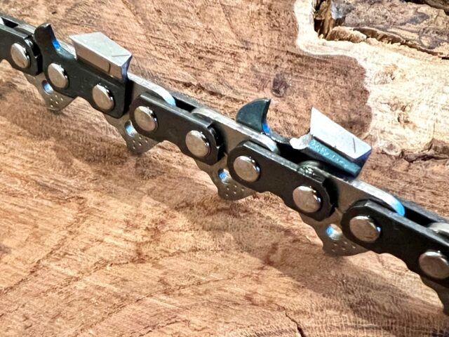 STIHL RAPID™ Super is an extremely fast-cutting chain. Its cutter and tie strap design reduces vibration levels significantly while still utilizing the aggressive full-chisel design. The razor-edged, square-cornered cutter shape ensures minimum chain friction for an exceptionally smooth and clean cut in hard or frozen wood. It offers excellent cutting and plunge-cutting efficiency. RS chain typically cuts faster than RM chain, but requires careful sharpening and maintenance to continue to perform well.