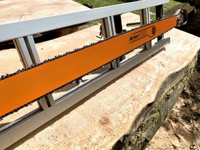 How much milling width do I get on may chainsaw? Easy – take your chainsaw and knock off 8″[or 20cm] and this is what you will mill maximum width.